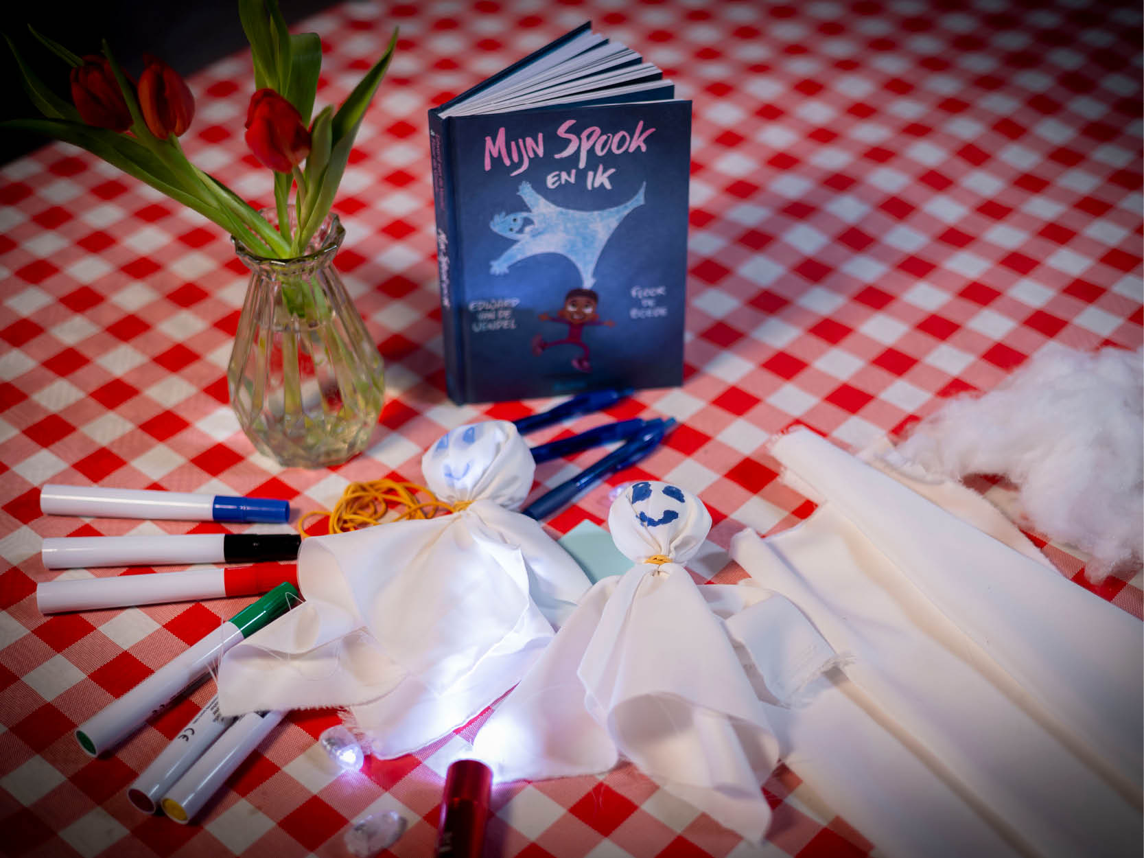 Een spookachtig Kinderboekenfeestje waarbij kinderen hun eigen hulpspook maken: een schattige spokenknuffel mét nachtlampje erin die ervoor zorgt dat je nooit meer bang hoeft te zijn.
